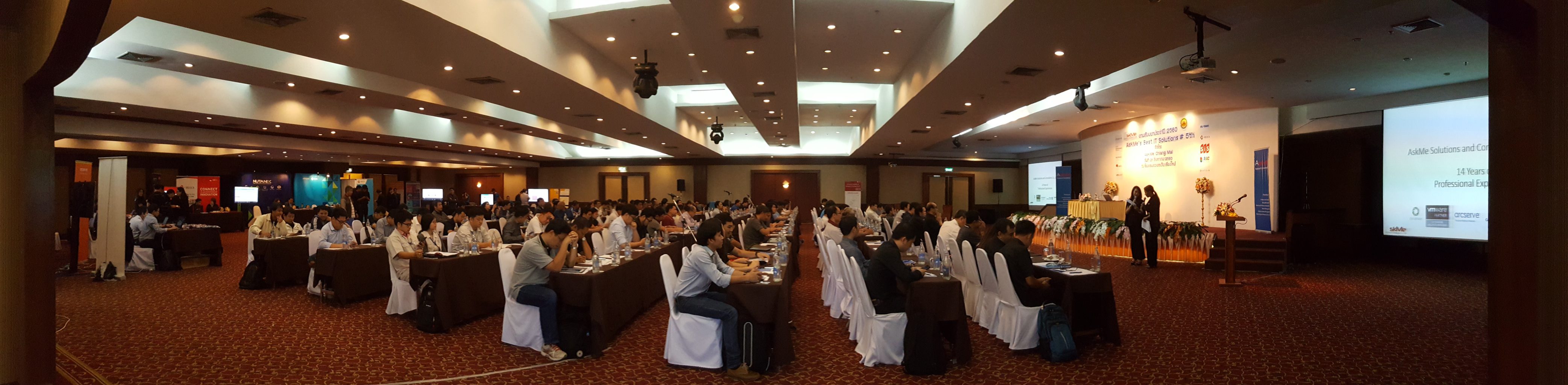 งานสัมนา @ AskMe Chiangmai – AskMe’s Best IT Solution #5 ประสบความสำเร็จอย่างงดงาม มีลูกค้ามาร่วมงานมากกว่า 150 ท่านจาก 70 องค์กรในภาคเหนือและมี Partner เข้าร่วมงาน 7 ราย ณ ห้องแกรนด์บอลลูน โรงแรมดวงตะวัน ลูกค้าได้ให้ความสนใจอย่างล้นหลาม