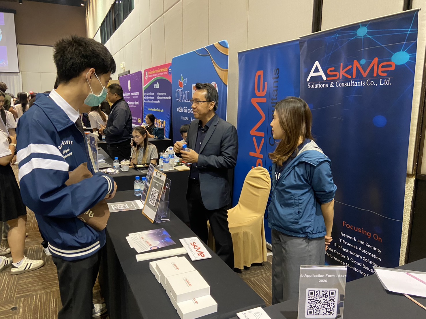 การเข้าร่วมงาน Job Fair ในครั้งนี้สะท้อนถึงความมุ่งมั่นของ AskMe Solutions ในการสนับสนุนการพัฒนาบุคลากรด้านเทคโนโลยีของประเทศไทย และร่วมเป็นส่วนหนึ่งในการสร้างแรงบันดาลใจให้กับนักศึกษารุ่นใหม่ที่กำลังเตรียมก้าวเข้าสู่โลกการทำงาน